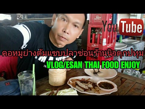 VLOG/EAT ESAN THAI FOOD ENJOY กินคอหมูย่างต้มแซบปลาช่อนสุดแซบร้านนิวตุก